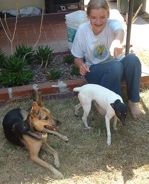 And, here's one of them together. Along with Teresa, our youngest at 14. Cory has really seemed to bond with her. He follows her everywhere, like a shadow: