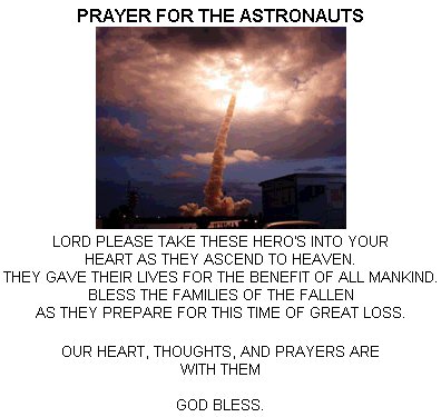 Rowd from Global Affairs made a nice tribute page of the crew and the Space Shuttle. I highly recommend you look through it. It is well done.