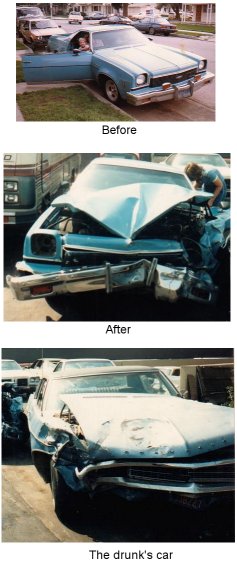 You may notice that the year is off a bit in today's entry. 17 years ago on this day, I had a little bit of a tangle with a drunk driver. He made a left turn in front of my 1973 El Camino and we T-boned him. Both my daughter and I were taken to the hospital, but we ended up being okay. The CHP officer attributed it to us being in a large American car. (Back then, they were tanks). Every year, I always remember this date. I am always thankful that I'm alive.