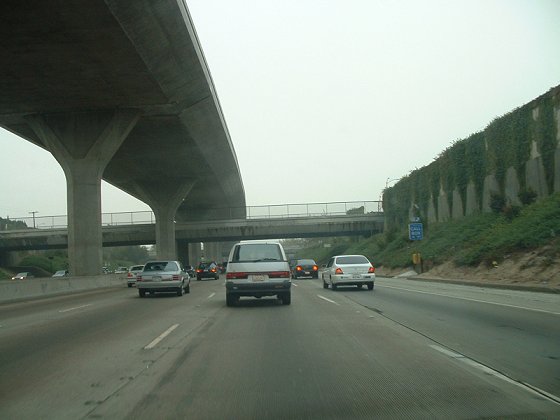 So, I get a summons a few weeks ago. I am ordered to go to the downtown Los Angeles Courthouse. They are selecting a grand jury. Grand juries are different from regular juries. They are used in "high profile" cases, where they don't want the press hanging around and leaking possible evidence, etc. And, they are also used in other cases where witnesses might be reluctant to testify, or possibly in danger, if they do. The prosecution presents evidence and witnesses to the grand jury, and it is up to them to decide whether or not there is enough evidence to go to trial. No defense lawyers are present during this time. Everything is all secretive and hush-hush. They called in people from all over the county, and they will select 14 jurors from that pool. They have to serve for a month. (You don't have to show up every day. You can call in to see if you are needed.) So, I had to drive into downtown Los Angeles this morning. I wasn't looking forward to it. I haven't commuted into downtown for about 20 years. And, I figured that the traffic would have to be much, much worse. But, it wasn't too bad. Except that some things never change. There is this one offramp. Gage Avenue; 20 years ago, traffic would always slow down there. Well, it hasn't changed. This is taken through the windshield. Traffic may look like it's moving, but barely. You can see the brake lights as people start to bunch up. I was probably moving all of 5 miles an hour when I took this.