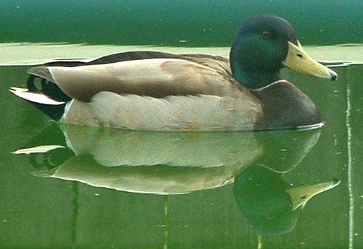 I was getting ready to go to work, when I happened to glance out the kitchen window towards the pool. I don't know if something caught my eye, or what. But, I noticed the drake floating on the pool. We used to have a plastic chlorine tablet dispenser that floated on the pool. It looked like a drake. But, after several years of weathering, it developed cracks and I took it out of the pool. It's actually in my garden in the front yard. So, when I saw the drake, I figured that someone had removed the float from the front garden, and went through the trouble a painting it. And, whoever did it, did a damn good job too! It looks so real!!!! And then, I saw the female. Shit! Real mallards! In our pool! I watched them for quite a while. I took a ton of pictures. I made myself late for work yesterday, because I wanted to see what they would do. Both male and female were in the pool when I first saw them, but the male got out and stood sentry for awhile while the female continued swimming. After about 45 minutes, the male must have felt secure and he dropped back into the pool and joined his mate. About that time, Pepper got out and ran onto the deck and started barking at them. They seemed to realize that she wouldn't go into the water, so they swam as far away from her as they could get. They really didn't seem too afraid, they stuck around. After Pepper got fed up and came back into the house, both mallards settled down and went to sleep: