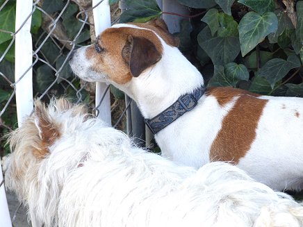 Shannon bought Max, the Great Dane, a new toy. It has a handle on one side, a length of rope, and a tennis ball on the other. She gives it to Max. We tell Billy, the Jack Russell Terrier, to go get the ball. So he obliges. And, his sidekick Sandy goes to help. The Russell's are tugging and tugging and tugging, with all their might. Max, is not putting forth any effort. If he did, those two dogs would be in the air.