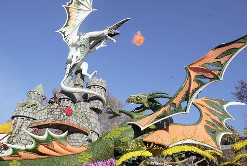 I hope this isn't a sign of how this year is going to go for me. Not soon after I woke up this morning, I managed to spill Super Glue all over my hand. It dried and I have been peeling it off all day. Went to work and put in a half day. Tradition for me is to take the Christmas decorations down while the Rose Parade runs in the background. Our local station KTLA Channel 5 runs the thing all day, so I have no problem if I catch it later. Anyway, as usual, American Honda's float kicked ass. It had some battling dragons that blew real flames. George Lucas was the Grand Marshal. There was a Star Wars themed float. And, some devoted fans were allowed to march in their Storm Trooper costumes. Here are some pictures from the LA Times web site.
