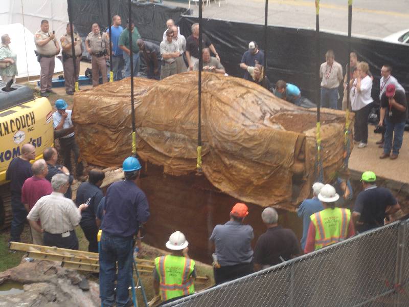 Event organizer Sharon King Davis, a fourth generation Tulsan whose grandfather helped bury the Plymouth, joked that the car needed a little Oil of Olay to help it out.