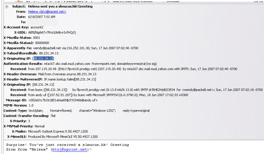 There were several red flags that I ignored.... The main one being that this was dated for Monday, June 18th. I received it on Sunday, the 17th. I didn't see all that. All I saw was "card from Helena". That's my oldest daughter's name. So, I thought that maybe she had sent me a card. You would have thought that maybe I would have noticed that funky e-mail address. Nope. And, me, who knows better than to click links from suspicious e-mails clicked on the link. Fortunately, Trend Micro's PC-Illin is more alert than I am and flagged it as a possible Trojan, or virus that someone was trying to drop on me. Duh!