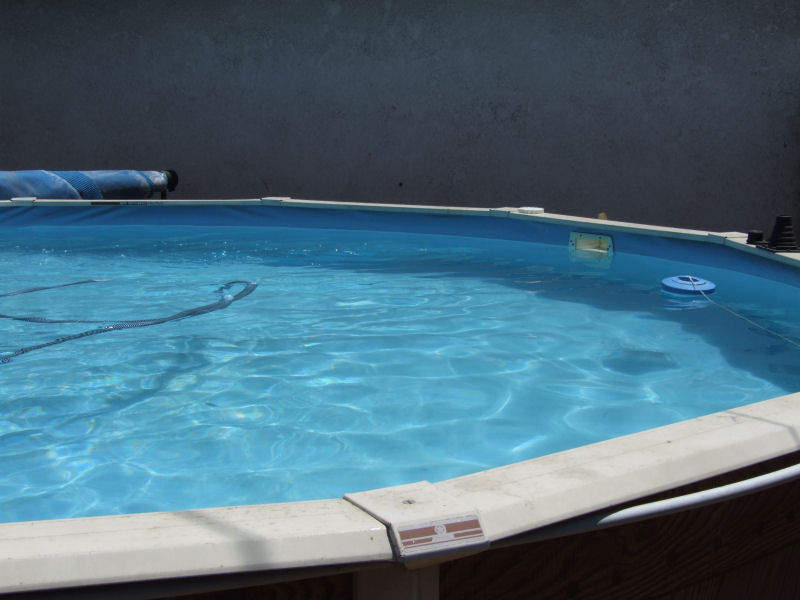 So, I drained the pool down below the level of the skimmer and took the sand filter apart. Dumped what sand was left and used the shop vac' to get the rest. Then Mike and I went to Lowe's and got some more sand for pool filters. We put that in and I tried to wash it the best I could. Then, I backwashed the pump, rinsed it and closed it. Then, I added water to the pool to get the level back up the the filter. When I had drained it down, I had put the cover back on. When I filled it, to the proper level, I checked the water itself. The water was clear, but I could see a lot of green on the side. I held off running the pump until I received the Spring Start-up Kit from In the Swim. I had a box of one pound shock packages from Leslie's Pools kicking around, but none of the other chemicals, like algaecide and clarifier, that come with the kit. When I removed the cover, I was shocked to see that the water, in a matter of a couple of days, had gone from being clear to a dark muddy green. And, it stunk. It smelled like raw sewage. So, I did a big no-no and threw in three packs of the Leslie's shocker. It took that much to get rid of the smell. The first picture is the way the water looked after it got shocked. It's a much lighter green, than it was when I first took the cover off. The In the Swim Spring Start-up package arrived and I followed the directions. Shock, algaecide, clarifier. I got rid of the green, but the water was still cloudy. So, I repeated the steps. A little more clear, but still slightly cloudy. So, I put in my trusty Miraclear, and it came out sparkling clean. Keep your fingers crossed that it at least lasts through the summer.