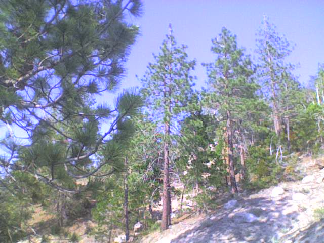 As posted previously, the Angeles Crest National Forest is not too far from where we leave. A one hour car trip gets you up into the local mountains. Drive the Angeles Crest Highway and you will find a lot of hiking trails. My sister and I went again today. With it being a weekday, there was hardly anyone there. We hiked up our favorite trail. I didn't want to haul the Fuji up, since after about an hour of hiking, it starts to feel like it weighs 100 pounds. So, I snapped this picture with my cell.