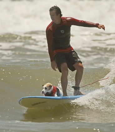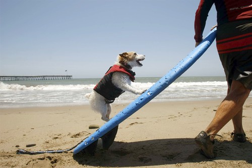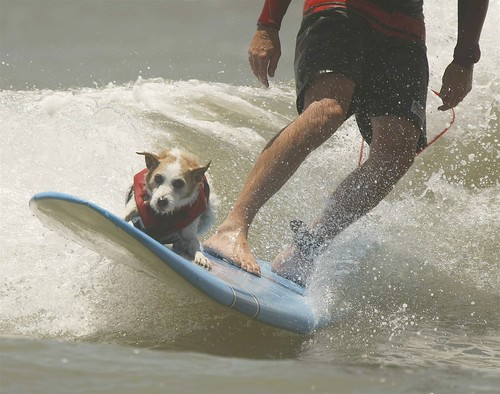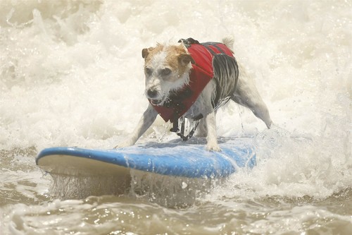 These are images that were published in the Los Angeles Times, showcasing the Loews Surfdog Competition. All kinds of dogs participated. I noticed, that out of nine photos, the guy from the Los Angeles Times took seven pictures of Jack Russell Terriers. The Russell pictured here seem to really enjoy it. The first 6 pictures are of a male Jack named Buddy. The last picture is a female Jack named Zoe.
