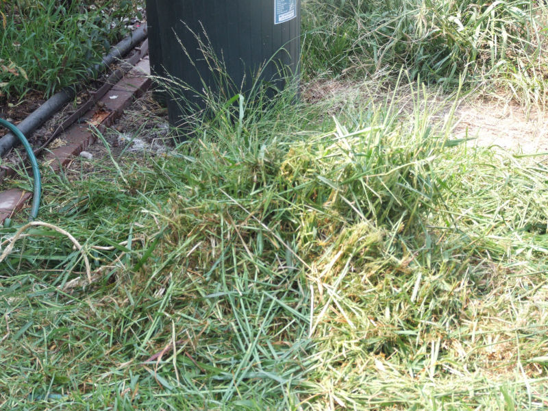 In this entry, I posted about the battle with the giant weed in my neglected backyard. It was the death knell for our ancient weed whacker. Mike and I went to Lowe's to buy a new one. They had one almost identical to the one that just died. However, the space underneath the display was empty. Next to that one, was the Grass Hog. I liked the image. I liked how powerful it looked. It looked evil. It wouldn't take any shit from the Weed from Hell. It was $10 to $15 bucks more than the one we were looking at. But, I looked at it this way. In 22 years of marriage, we have been through two weed whackers. That averages out to 11 years each. And that's with abuse. So, if this beastie lasts 11 years or more, I figured it would be worth it. So, we bought it. Flash forward, about two weeks later, and I finally get around to using it. It has dual strings as opposed to the single string of the old one. As I fire it up, I thought I saw the massive weed shudder. The Grass Hog made short work of Satan's weed. With more of it exposed, I hit it with the 1 year grass killer. Eventually, I want to dig this area up, remove about 6 inches and soil and rototill. I want to plant a new lawn eventually.