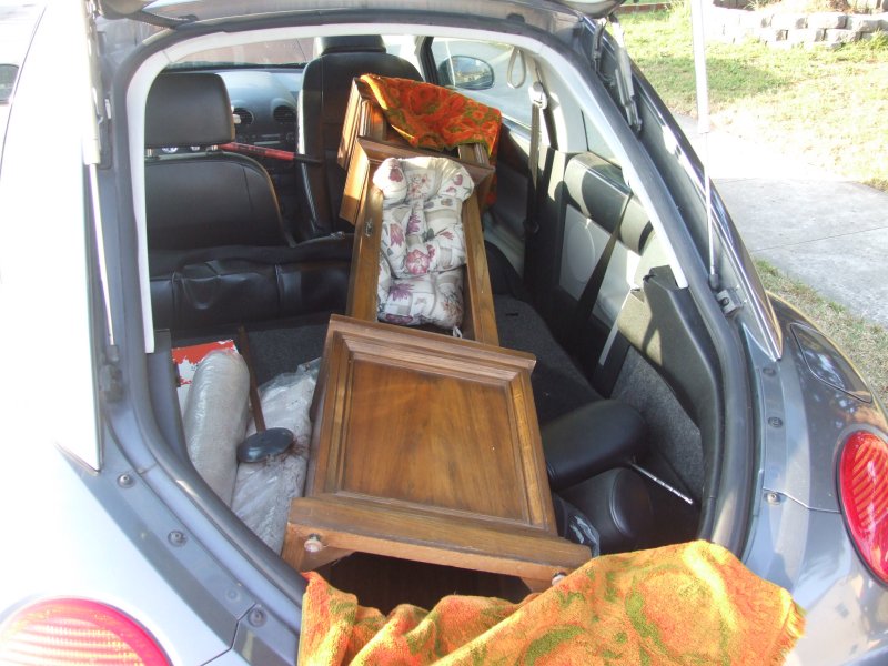 I posted here, about my love for hatchbacks. Just wanted to post yet another hatchback story. I managed to fit a 7 foot tall Grandfather clock into the back of our gray New Beetle. Not only that, I was able to close the hatch without any problem.