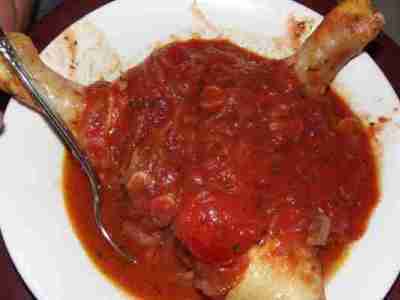 - 14" skillet, olive oil, hot, garlic, 1 minute