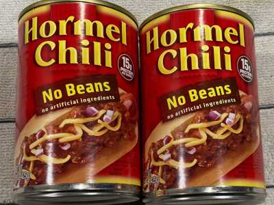 - Hormel Chili, no beans