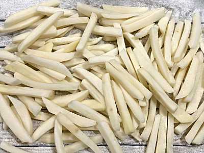 - french the potatoes, into hot water for an hour